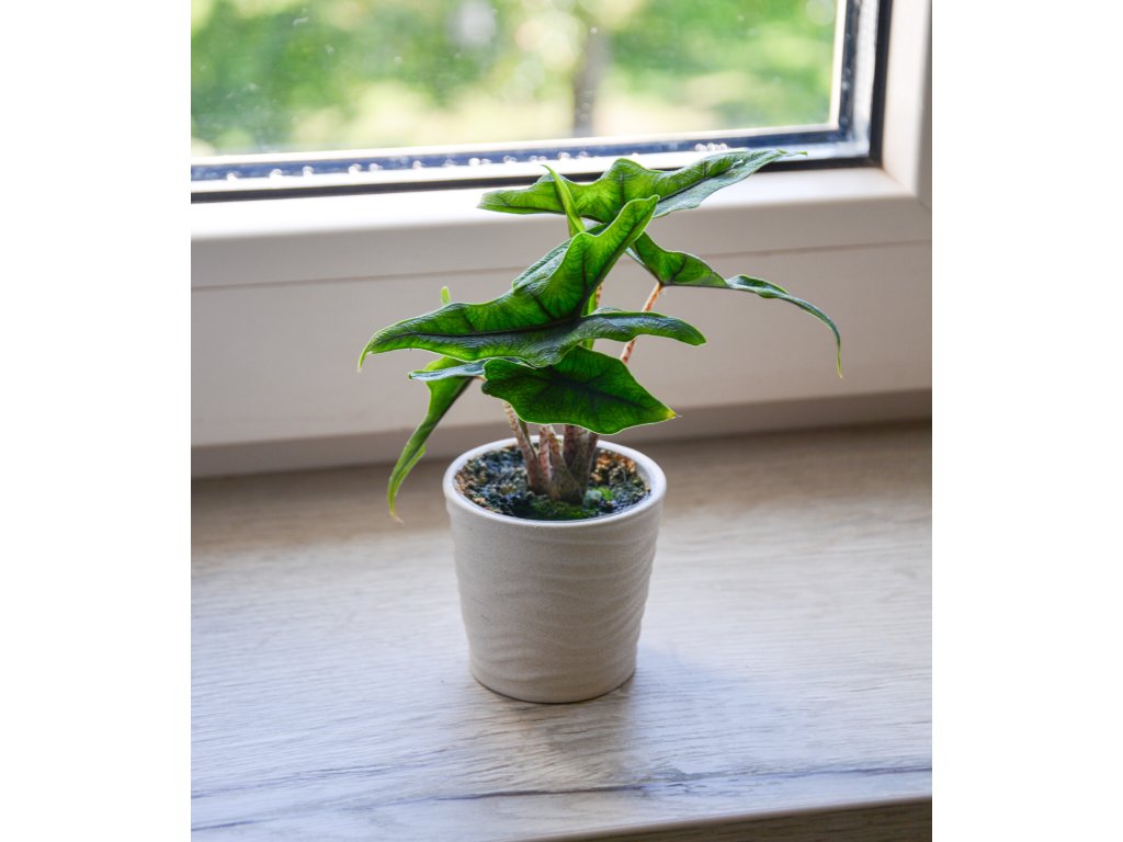 Pokud chcete rostlinu, která upoutá pozornost každé návštěvy a přinese do bytu kousek tropické atmosféry, je Alocasia 'Jacklyn' ideální volba.