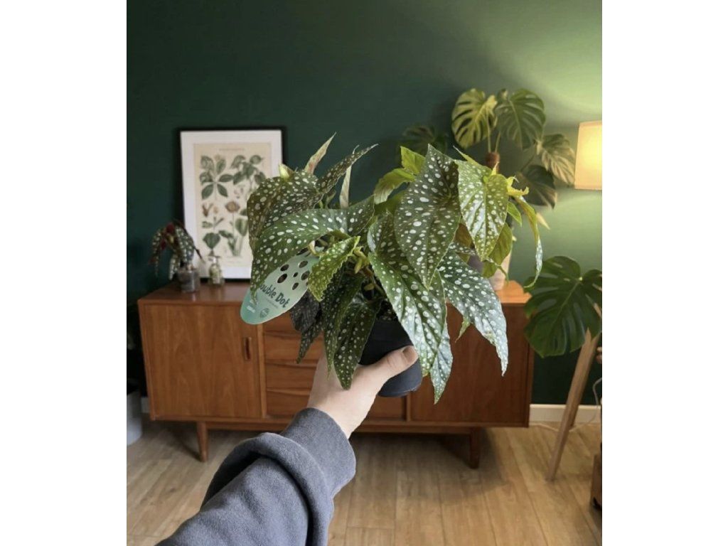 Po úspěšném zakořenění začne begonia 'Double Dot' postupně tvořit nové listy s typickým skvrnitým vzorem. Roste spíše kompaktně a při pravidelné péči vytváří hustý, dekorativní keřík vhodný do bytu i kanceláře.