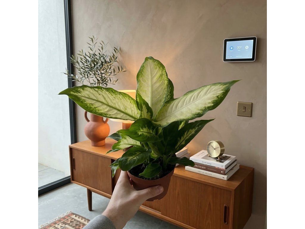 Dieffenbachia ‘Camilla’ patří mezi oblíbené pokojové rostliny díky svým velkým, dekorativním listům. Typický je pro ni světle krémový střed listu, který je lemovaný tmavě zeleným okrajem. Díky této kontrastní kresbě působí velmi svěže a dokáže rozzářit i jednodušší interiér.