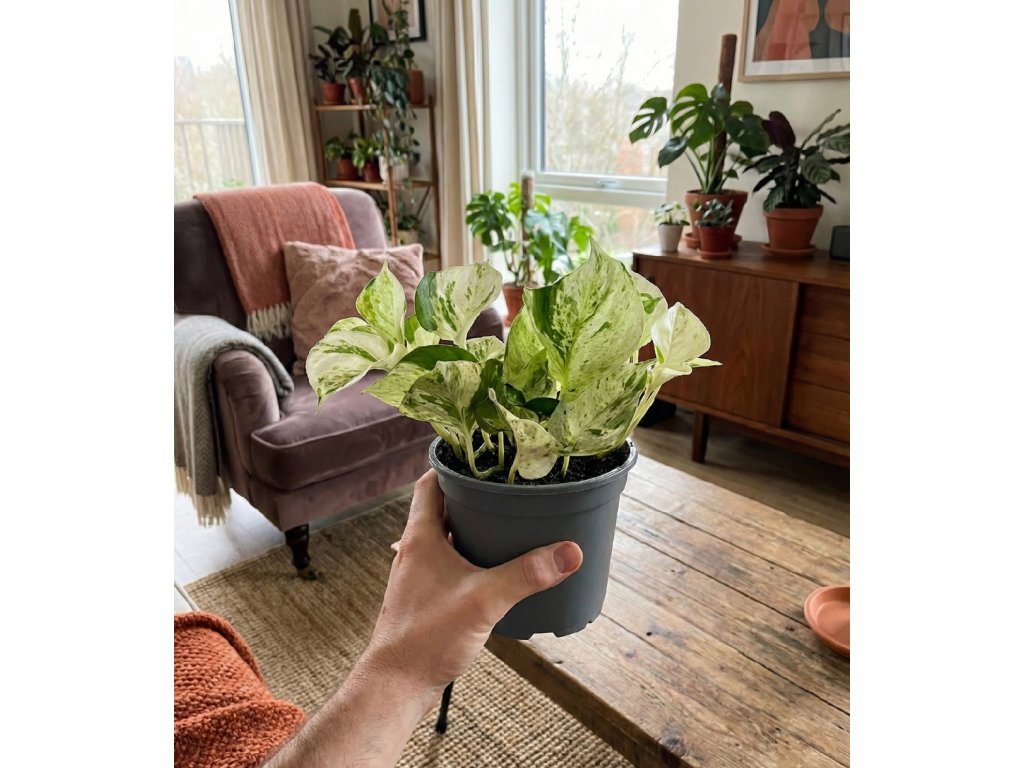Epipremnum ‚Happy Leaf‘ je oblíbená panašovaná odrůda s jemnou kombinací zelených a krémových tónů. Kresba je nepravidelná, každý list je originál a celkový vzhled působí svěže a harmonicky. Oproti výrazně kontrastním odrůdám působí vyváženě a dlouhodobě příjemně na pohled.