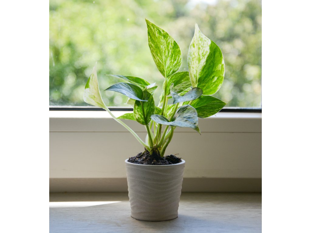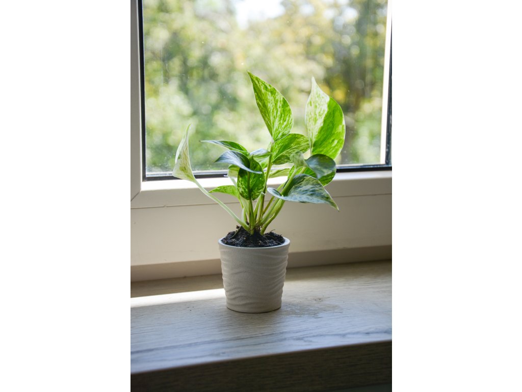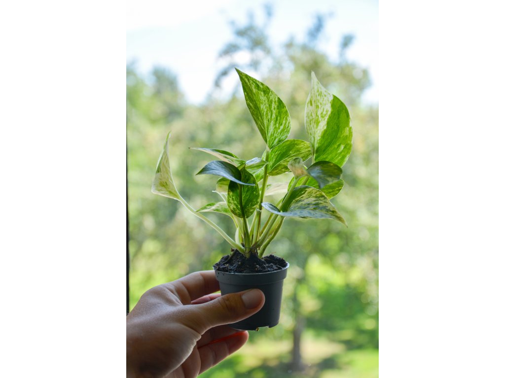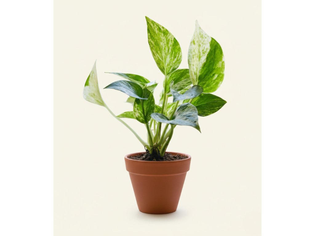 Epipremnum 'Marble Queen' je královna mezi nenáročnými pokojovkami. Její mramorované listy v kombinaci zelené a krémově bílé přinášejí do interiéru světlo, klid i přírodní eleganci. Může růst zavěšeně, nebo se pnout po opoře – přizpůsobí se vám.
