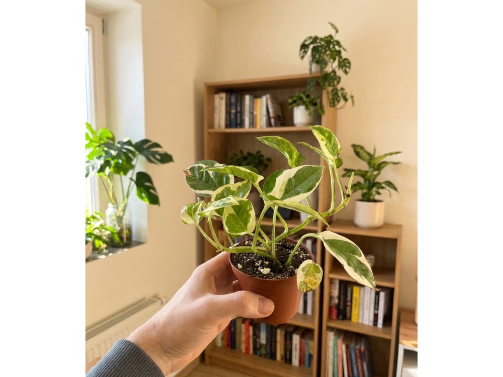 Epipremnum N’JOY přináší do interiéru živost a svěží kontrast. Její drobnější listy s jemným panašováním v odstínech zelené a krémové vypadají jako umělecká koláž přírody. Je to ideální rostlina na poličku, do závěsného květináče nebo jako popínavá po mechu či tyči.