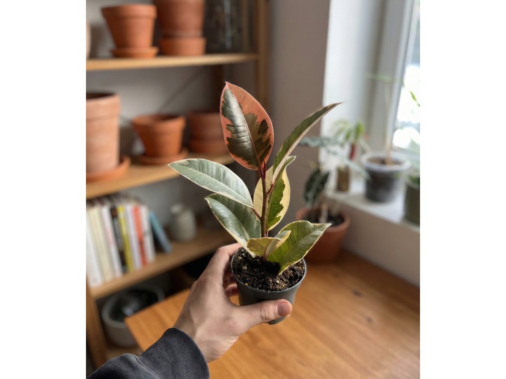 V průměru Ø 8,5 cm je gumovník drobný, ideální na pracovní stůl, poličku nebo jako doplněk ke sbírce větších rostlin. Postupně vytváří nové listy a s časem získává krásně robustní vzhled.