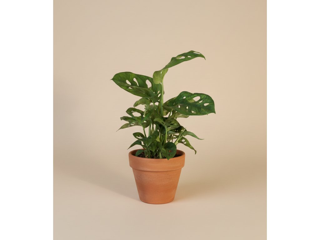 Monstera obliqua ‘Monkey Mask’ je oblíbený popínavý druh se zábavnou kresbou — její listy mají velké oválné otvory, díky kterým vypadá jedinečně a hravě. Listy jsou tmavě zelené, jemné a působí velmi tropicky. Je to přesně ta rostlina, která okamžitě zaujme svým neobvyklým vzhledem.