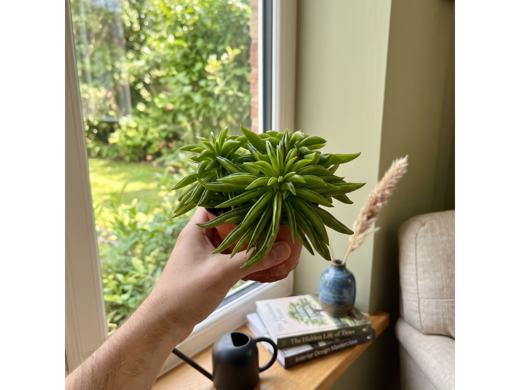 Je vhodná pro začátečníky i pro ty, kdo hledají menší rostlinu bez zbytečných nároků. Díky kompaktnímu růstu se snadno vejde na pracovní stůl, polici nebo menší komodu. Ocení ji i ti, kdo občas na zálivku zapomenou, protože dužnaté listy si umí uchovat určitou zásobu vody.