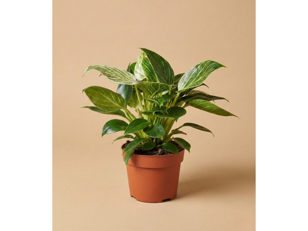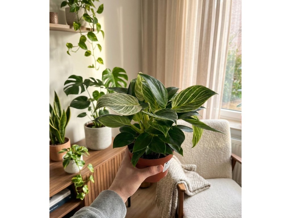 Philodendron ‘Birkin’ je oblíbený pro svůj čistý, grafický vzhled, který zaujme bez toho, aby působil výrazně nebo rušivě. Každý list má lehce odlišnou kresbu, díky čemuž rostlina nepůsobí jednotvárně, ale stále zůstává vizuálně klidná.
