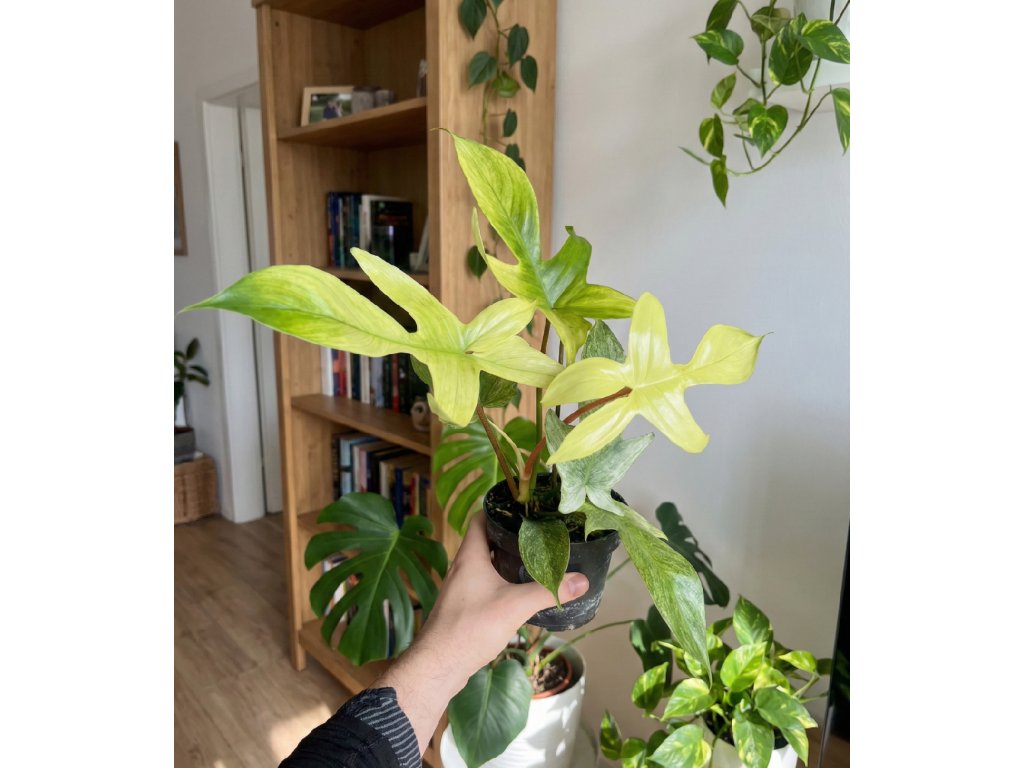 Philodendron ‘Florida Ghost’ je vyhledávaný pro svůj proměnlivý vzhled – nové listy raší velmi světlé, téměř krémové, a postupně tmavnou do zelených odstínů. Díky tomuto přirozenému přechodu působí rostlina živě a s každým novým listem se lehce promění.