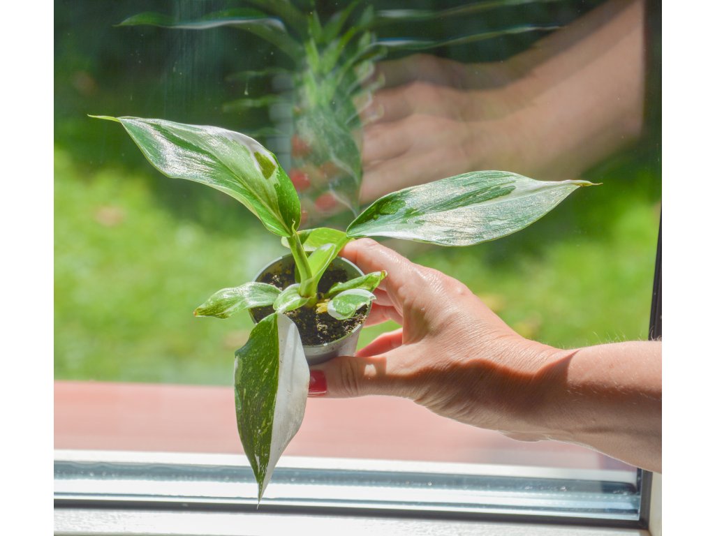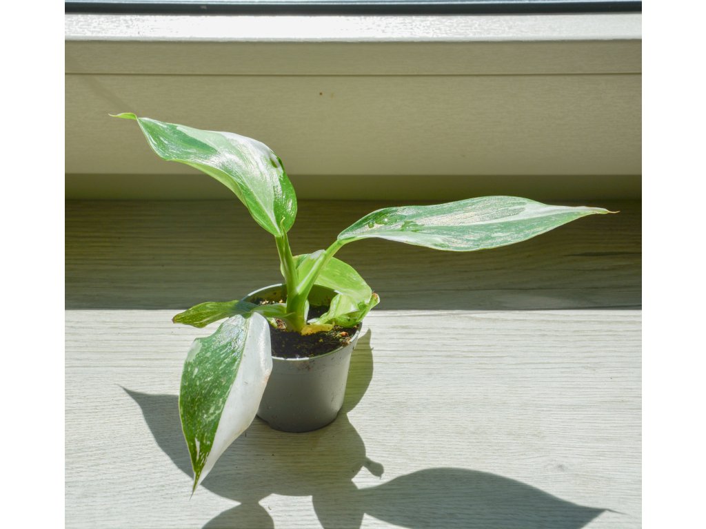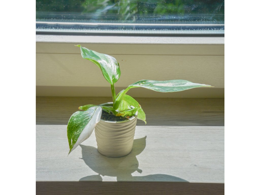Philodendron 'White Wizard' je elegantní pokojová rostlina s kultovním statusem. Vyniká lesklými zelenými listy s kontrastními bílými plochami, které působí jako namalované štětcem. Díky kompaktnímu růstu je ideální i do menších prostor.