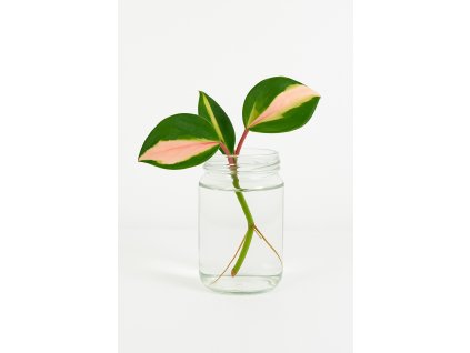 Hoya carnosa ‘Tricolor’ – řízek s voskovitými listy v zeleno-bílo-růžových tónech, připravený k dalšímu růstu.