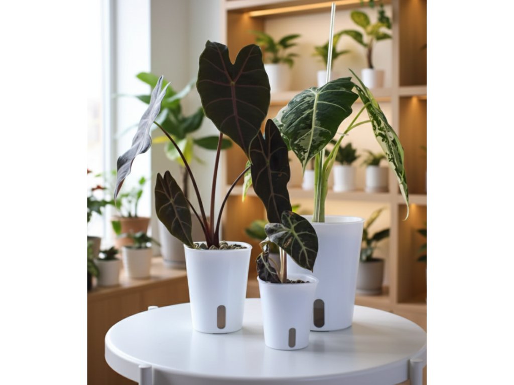 Dopřejte svým rostlinám luxus a sobě klid v duši. Bílý samozavlažovací květináč je ideálním řešením pro milovníky aroidů a pokojovek, které vyžadují stabilní vlhkost.