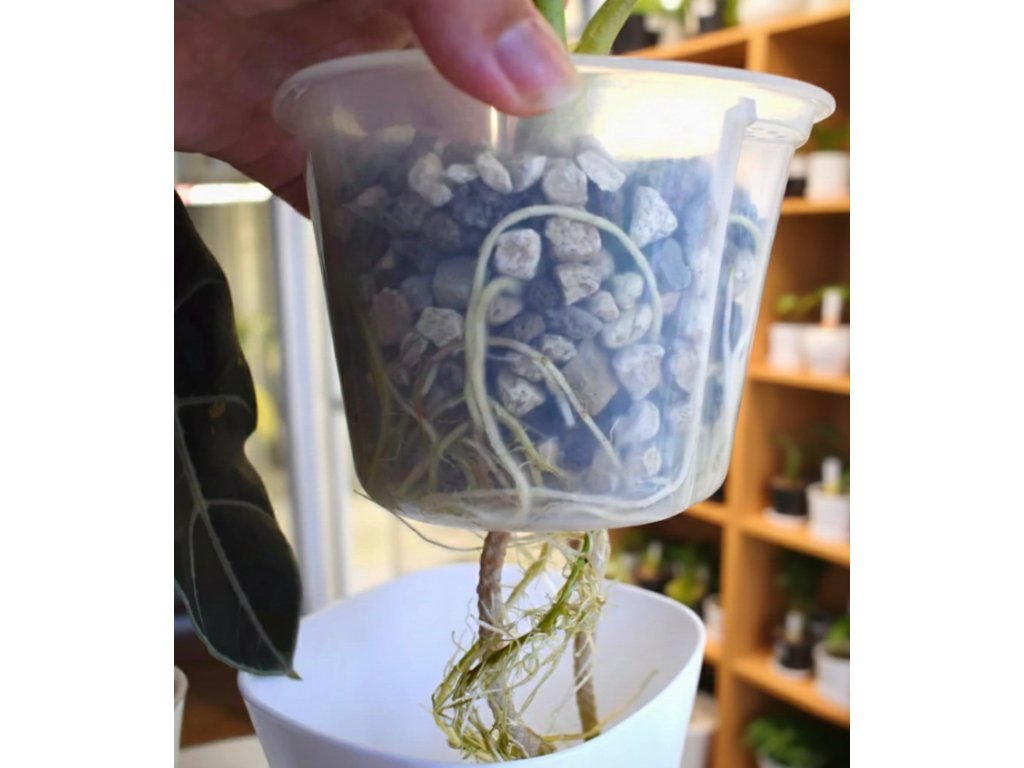 • Dokonalý přehled: Díky transparentní vnitřní nádobě přesně vidíte, jak se kořenům daří a kdy je potřeba doplnit vodu.