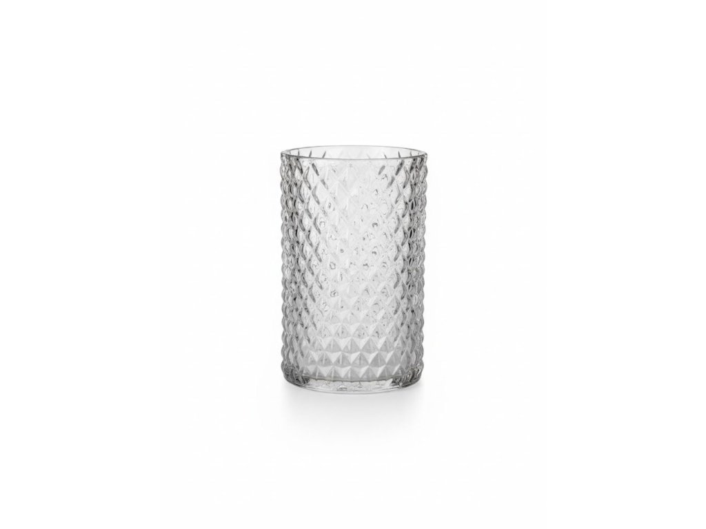 kleněná váza s diamantovým reliéfem – čirá, v15 × ø10 cm