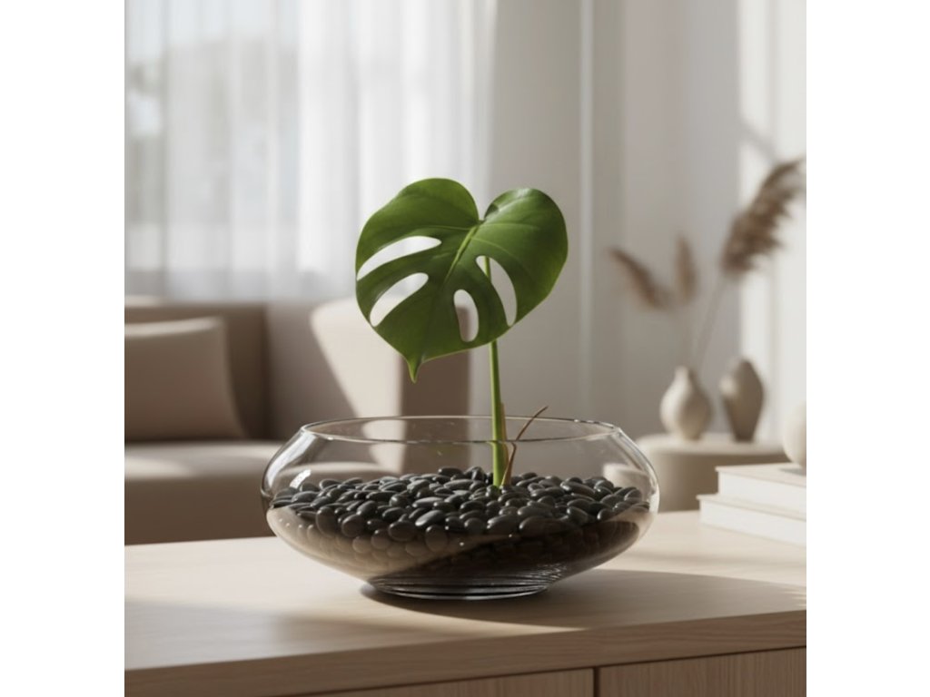 ✔ Čiré sklo – krásně vyniknou kořínky i dekorace